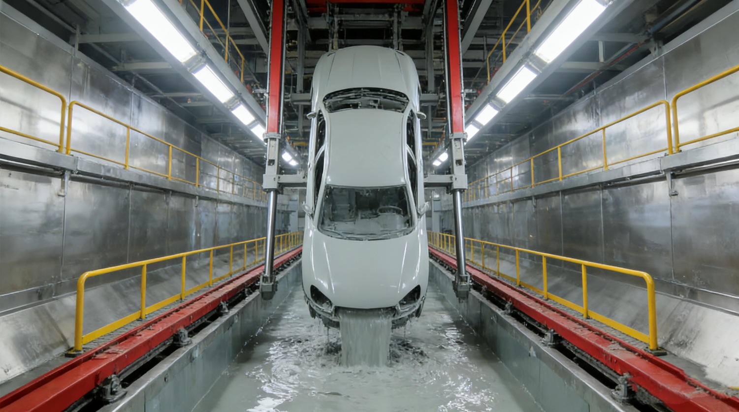 ●电泳后清洗效果不佳:电泳后的工件需要进行充分的水洗(通常包括UF液清洗和纯水清洗)以去除表面残留的浮漆和杂质。如果后清洗液脏、含漆量过高,或者过滤不良,清洗水中的颗粒杂质会再次附着在工件上,烘干后形成漆膜颗粒。特别是对于水平面较多的工件(如汽车车身),如果后冲洗压力不足或喷淋不均匀,难以将凹槽处残留的漆和杂质彻底冲掉,这些部位更容易出现颗粒沉积。